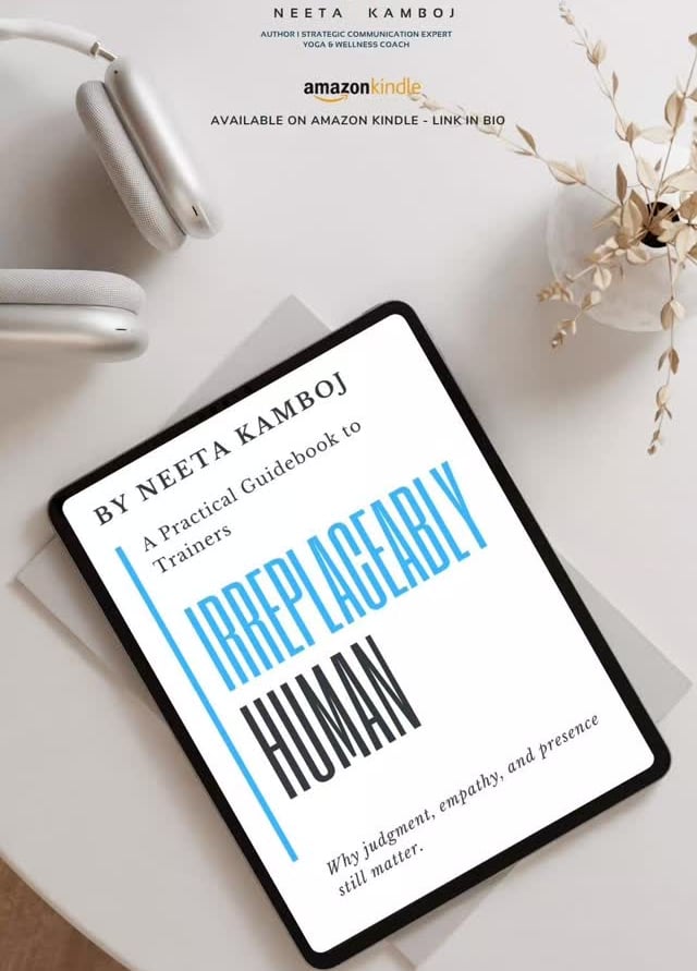 Neeta is the author of Irreplaceably Human, a reflective book that explores judgment, empathy, presence, and communication in the modern professional world.